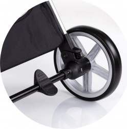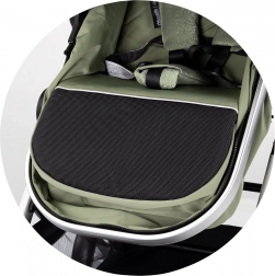 - Détails pratiques : grand panier, chancelière, sac à langer, dragonne de sécurité