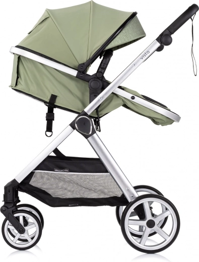 Chipolino Vista Basil est une poussette combinée pratique qui permet de passer aisément du mode nouveau-né à un siège sport confortable. Grâce à son châssis en aluminium léger à l’effet anodisé et à ses roues suspendues, elle gère aussi bien la ville que les pavés. L’unité d’assise réversible permet d’installer l’enfant face route ou face parent, tandis que le guidon réglable en hauteur recouvert de simili cuir assure le confort des parents.