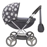 La poussette est conçue pour des poupées jusqu’à env. 46 cm, dispose d’une capote rétractable contre le soleil et d’un panier de course pratique pour tous les indispensables. Elle comprend également un sac stylé pour les accessoires de la poupée.