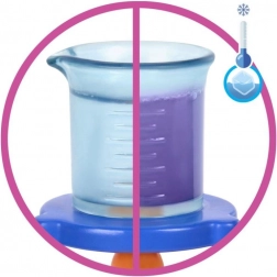 Le set inclut un bêcher spécial avec un effet thermochromique pour jouer avec le changement de couleur, ainsi que d’autres outils de laboratoire qui favorisent la motricité fine, la créativité et la curiosité. La poupée porte une robe tie-dye, des baskets et une blouse de laboratoire blanche – prête pour chaque aventure scientifique.