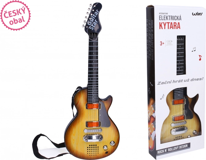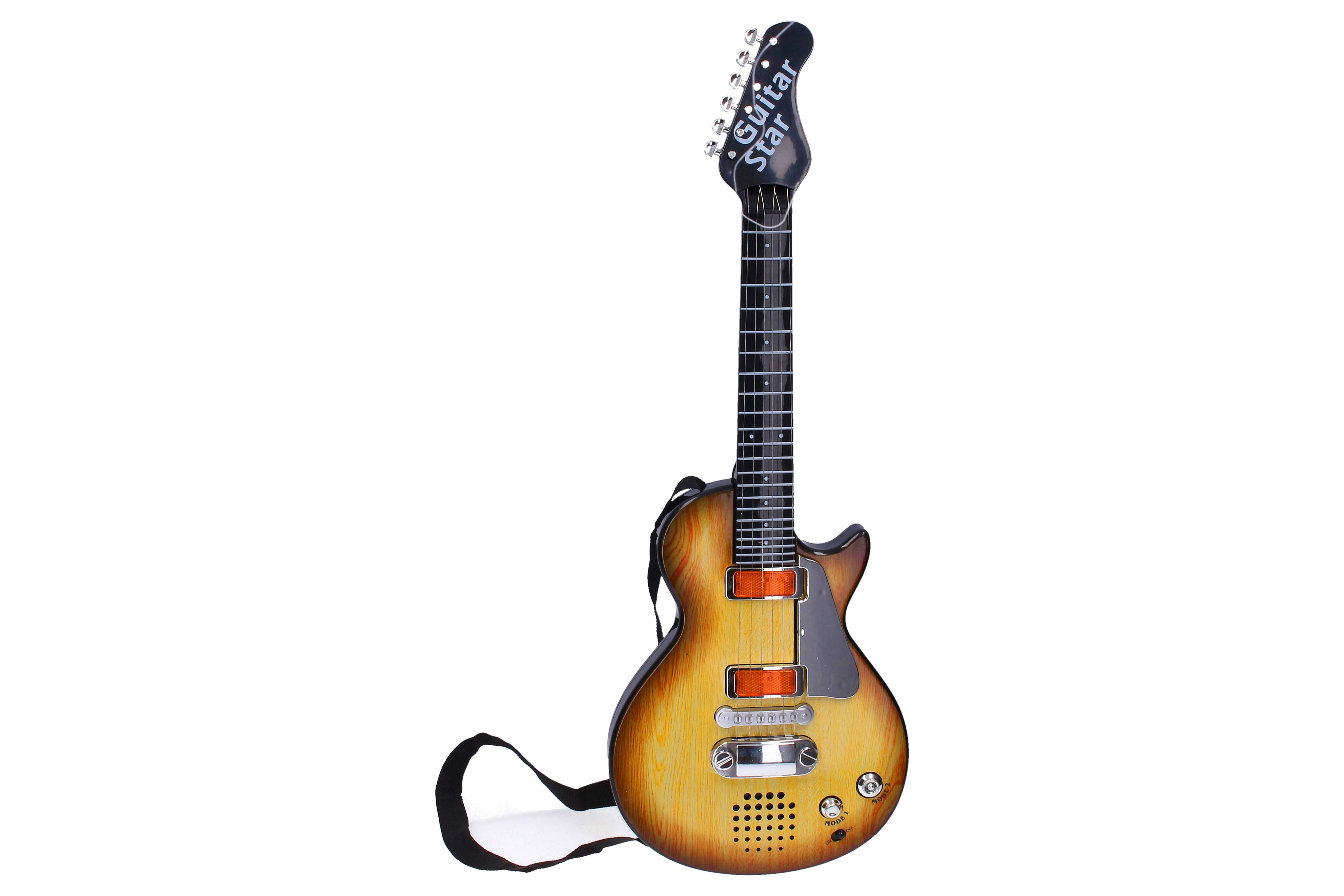 Découvrez la guitare électrique pour enfants avec effets de 55 cm, idéale pour les petits musiciens. Elle propose des effets lumineux et sonores attrayants, un contrôle facile et un emballage en tchèque pour une utilisation pratique. Microphone non inclus et nécessite 3× piles AA (non incluses) pour fonctionner.