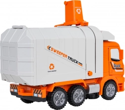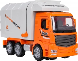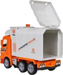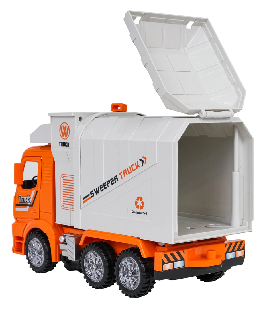 Ce camion-benne orange est fabriqué en plastique de qualité avec un souci du détail. Grâce aux effets lumineux et sonores, il offre aux enfants une expérience authentique de la circulation urbaine. Les commandes incluent la conduite dans toutes les directions, des portes ouvrantes et le relevage/abaissement automatiques du conteneur, stimulant un jeu créatif et réaliste.