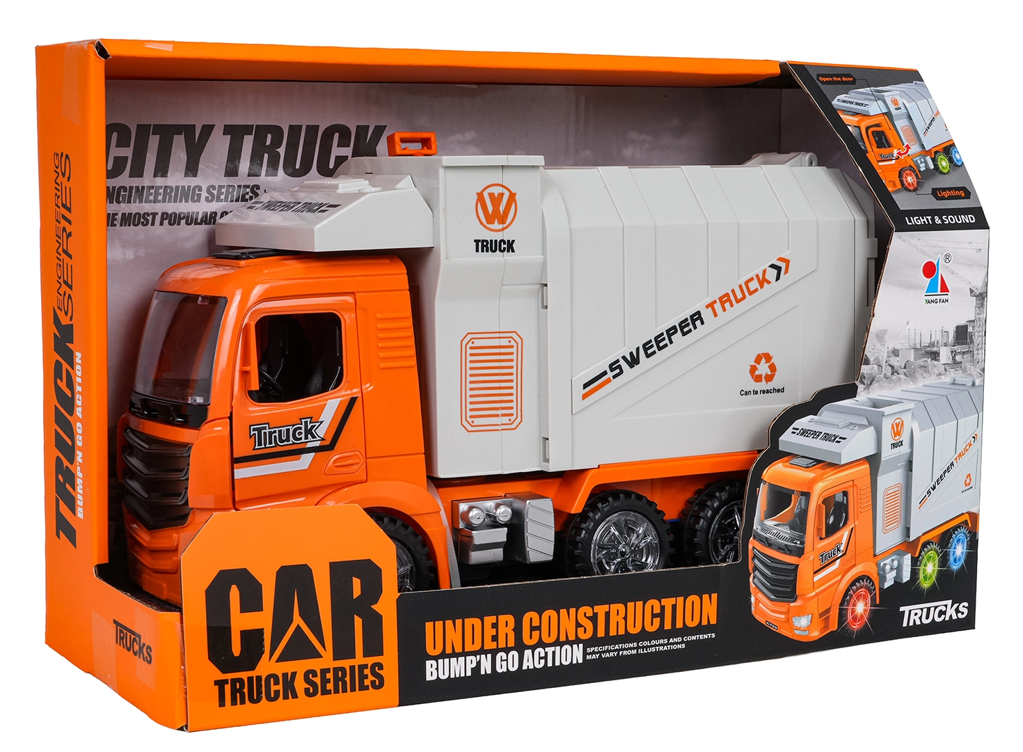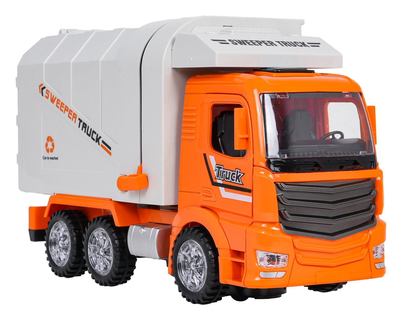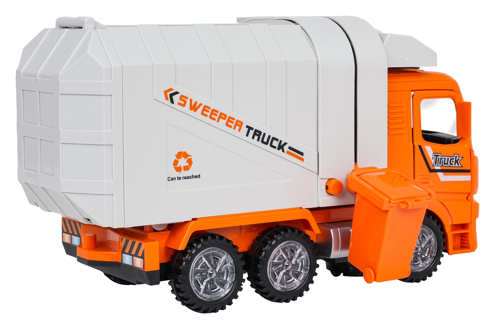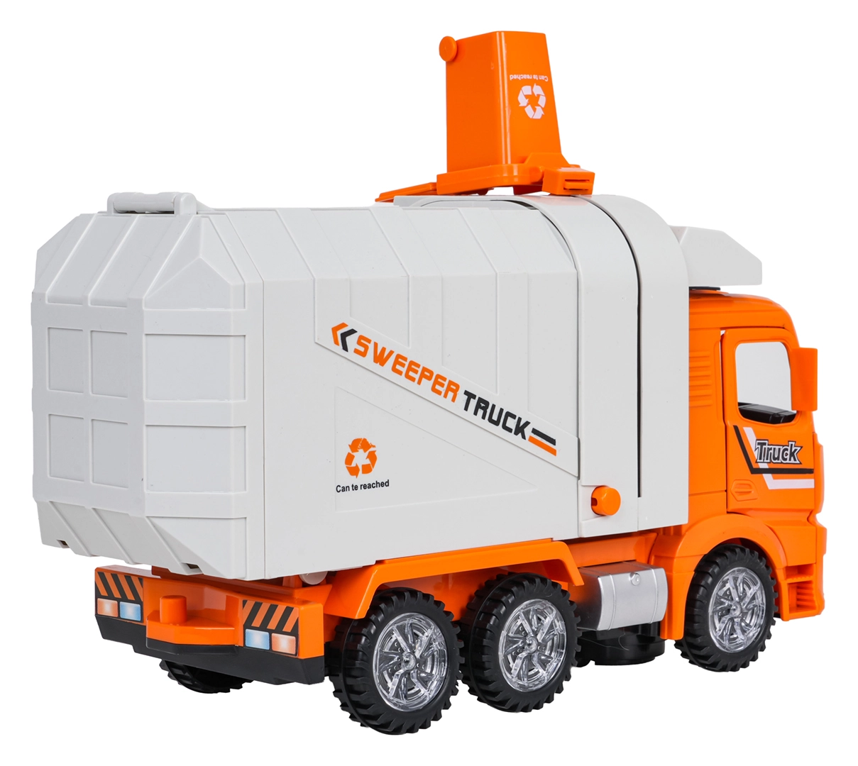 En plus des fonctions électroniques, le véhicule propose des options manuelles – il est possible d’ouvrir la trappe arrière et de basculer la poubelle directement dans la trémie. Sa construction robuste et ses éléments lumineux garantissent de longues heures de jeu en toute sécurité pour les petits conducteurs dès 3 ans.
