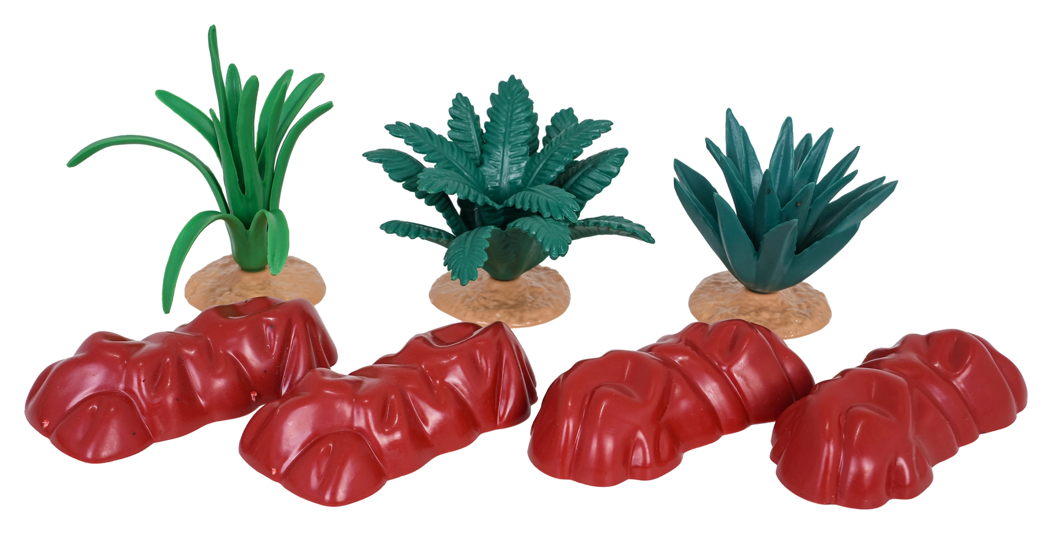 - Accessoires robustes : 7 éléments de clôture, 4 rochers, 3 plantes