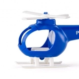L’hélicoptère de police bleu, avec rotors tournants, atterrit sur le toit du garage – idéal pour des histoires palpitantes et des interventions dynamiques.