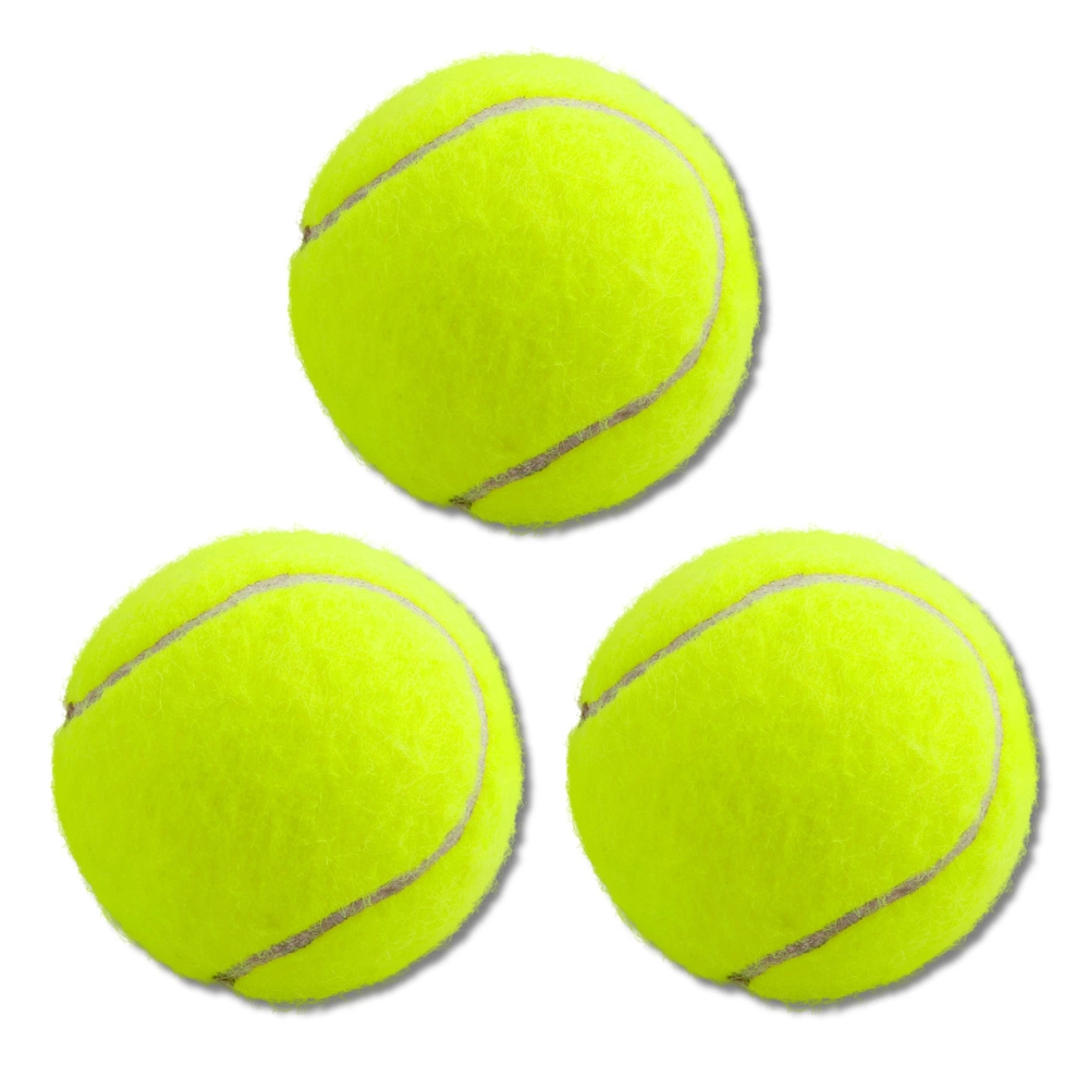 Set universel de trois balles de tennis, idéal pour l’entraînement comme pour le jeu récréatif. Grâce à un matériau de qualité, elles offrent une excellente élasticité, une longue durée de vie et une haute visibilité grâce à leur couleur jaune vif.