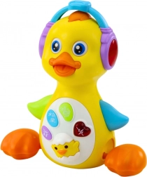 Ce caneton interactif et coloré est conçu pour captiver les enfants dès 18 mois. Grâce aux boutons, déclenchez des mélodies joyeuses, des chansons et des sons, tandis que les lumières sur le casque et le petit cœur clignotent en rythme. Le caneton peut avancer tout en se dandinant joyeusement de côté, rendant le jeu dynamique et captivant.