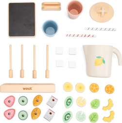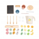 Ce joyeux set de jeu en bois apporte tout ce dont les enfants ont besoin pour préparer des limonades et des gourmandises fruitées. Il suffit de remplir le gobelet, d’ajouter des tranches de fruits, de décorer avec une paille et le service peut commencer. Les enfants peuvent mélanger différentes combinaisons, inventer leurs propres recettes et développer leur imagination en jouant au pique-nique ou au stand de rafraîchissements.