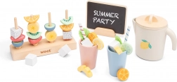 Ouvrez aux enfants les portes de l’imagination avec ce set de fête d’été en bois. Les petits hôtes dès 3 ans peuvent préparer de rafraîchissantes limonades, créer de colorées brochettes de fruits et organiser leur propre stand de rafraîchissements. Le set favorise la motricité fine, la reconnaissance des couleurs et la coopération, et est fabriqué en bois issu de sources durables.