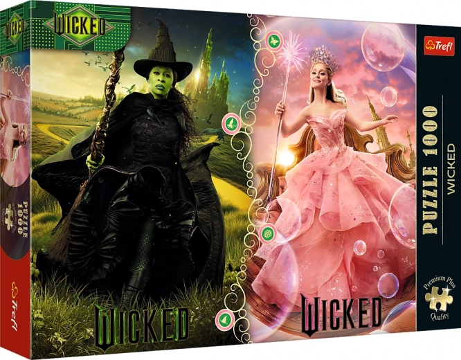 Trefl Premium Plus puzzle Wicked : Elphaba et Glinda, 1000 pièces. Découpe précise, carton rigide, certification FSC, affiche modèle incluse. Dimensions 68,3 × 48 cm.