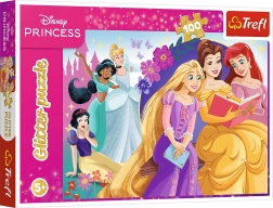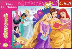 Puzzle scintillant avec motif de princesses et 100 pièces ravira toutes les petites amatrices de brillance et de contes de fées. De fines paillettes donnent à l’image un effet magique et, une fois assemblé, le puzzle devient une magnifique décoration de chambre d’enfant. La taille de l’image assemblée est d’environ 48 × 34 cm.