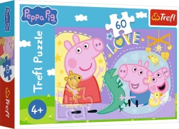 Puzzle pour enfants avec le motif Peppa Pig pour les petits fans du dessin animé préféré. Contient 60 pièces et une fois assemblé, forme une image de 330 × 220 mm. Fabriqué avec des matériaux de qualité et écologiques et du papier calandré, qui réduit les reflets et rend l’assemblage plus agréable.