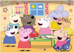 Le puzzle de sol sur le thème de la boutique de Peppa ravira tous les petits fans de la série populaire. Grâce aux grandes pièces solides, l’assemblage est confortable directement au sol et convient même aux débutants. Les enfants s’exercent de manière ludique à reconstituer un tout à partir de parties, développent leur logique et renforcent leur patience.