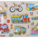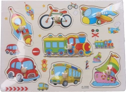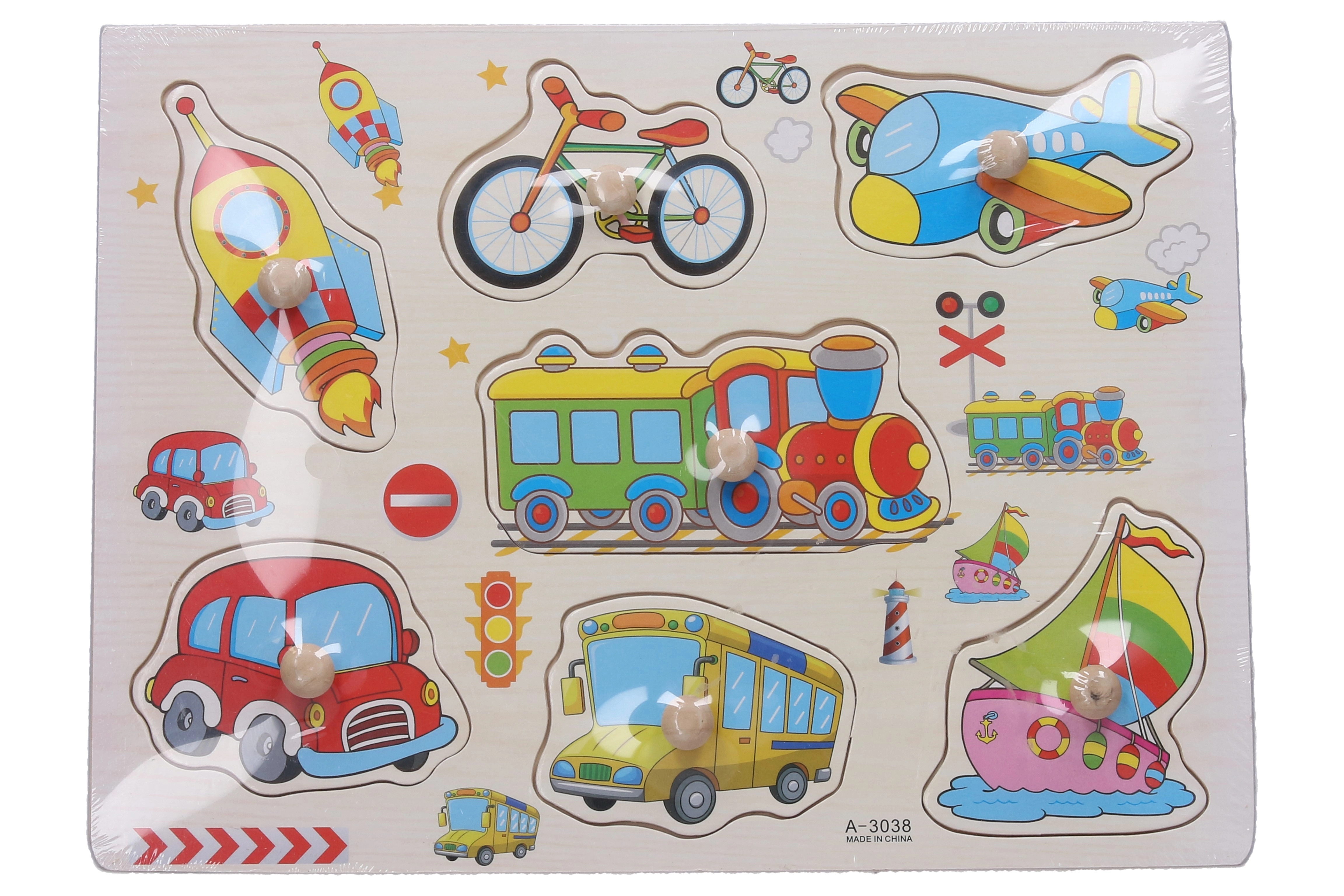 Ce puzzle en bois de qualité, représentant des moyens de transport, est un outil idéal pour les enfants qui apprennent à reconnaître les formes et les objets qui les entourent. Les pièces sont faciles à saisir et s’insèrent dans des évidements pré-découpés, ce qui favorise la coordination œil-main.