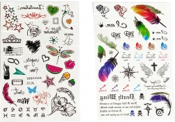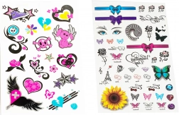 Découvrez l’univers coloré des tatouages temporaires pour filles. Chaque feuille contient des dizaines de motifs adorables de tailles variées – des papillons et fleurs aux petits cœurs, nœuds et étoiles. Grâce à une procédure simple, les enfants peuvent les appliquer sous la surveillance d’un adulte. Parfaits pour les fêtes, carnavals, cadeaux de pochettes-surprises ou comme décoration créative le week-end.