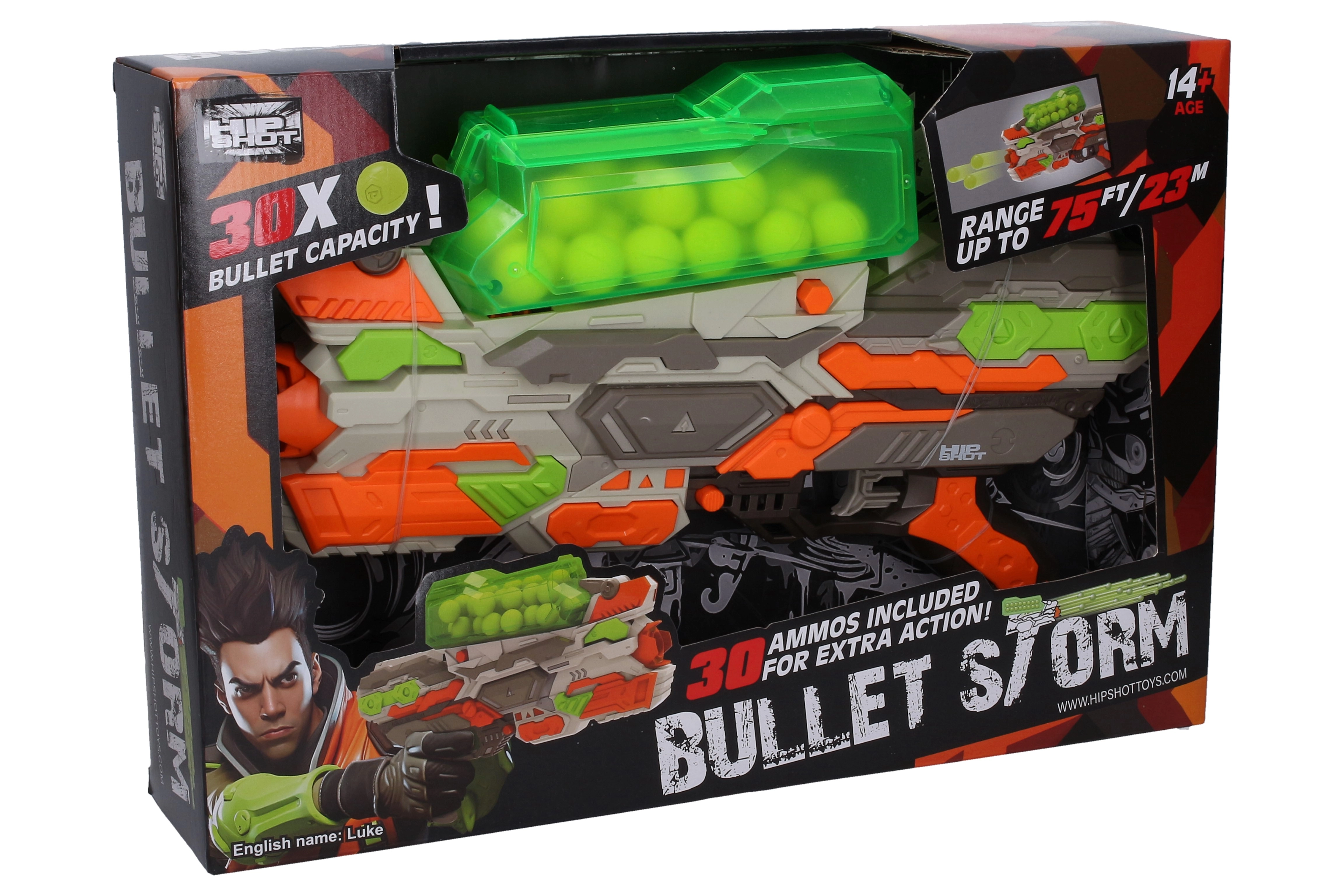 Préparez-vous pour une action palpitante avec le pistolet Bullet Storm, qui allie sécurité et performance. Grâce à une portée allant jusqu’à 23 mètres et à une réserve de 30 balles en mousse souples, vous profiterez de longues heures de jeu à la maison comme en extérieur. Sa construction robuste et sa prise en main confortable assurent un contrôle aisé et sûr.
