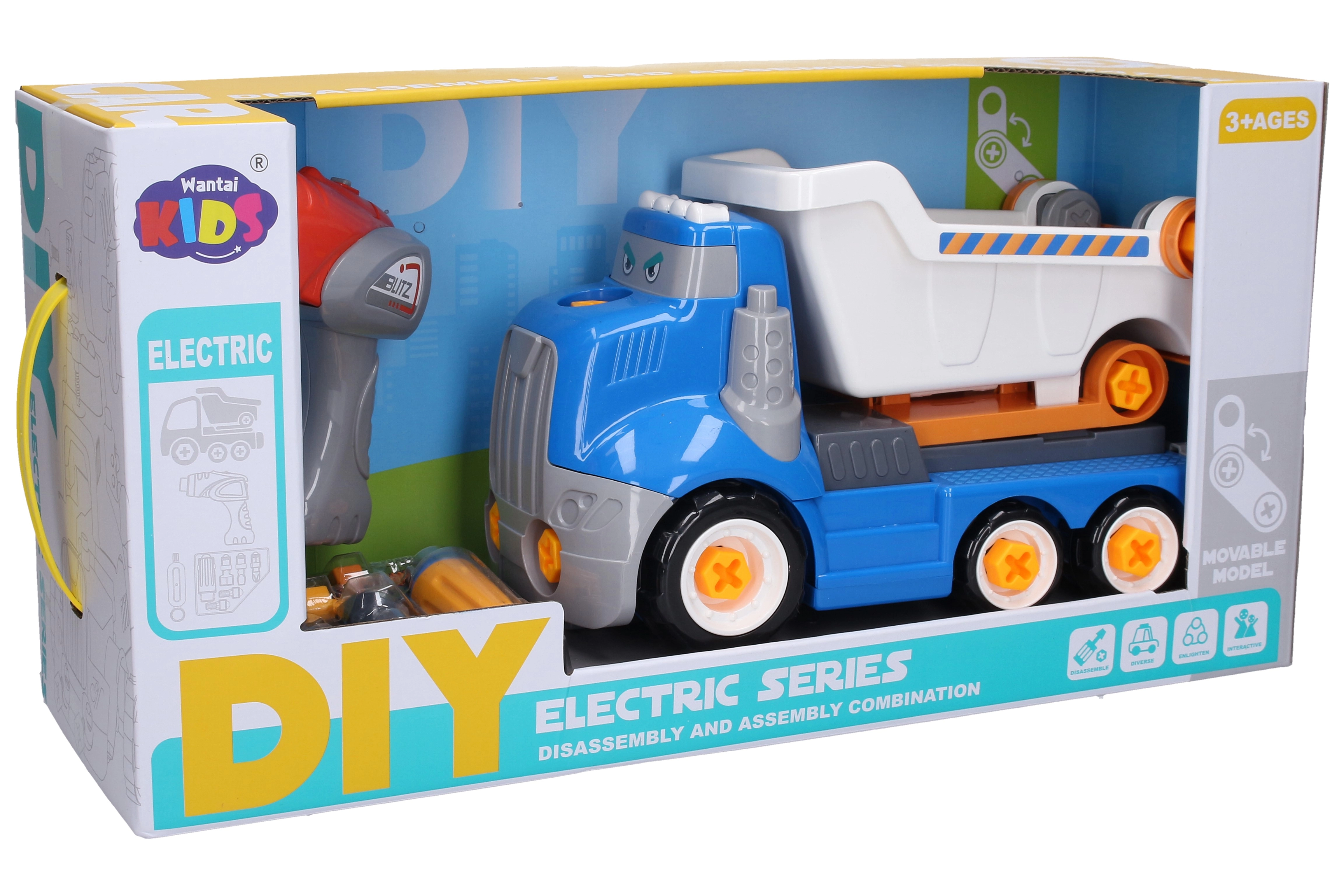 Construisez et conduisez votre propre véhicule de chantier ! Cette benne à visser de 28 cm est livrée avec un tournevis électrique et un set d’outils, afin que les enfants puissent démonter et remonter la voiture. L’unité électrique amovible peut être insérée directement dans la voiture pour une propulsion électrique simple. Un excellent jeu pour le développement de la motricité fine, de la patience et de la pensée technique.