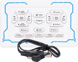 Le robot se contrôle facilement via la télécommande 2,4 GHz et permet aussi de programmer des séquences de mouvements. En mode démo, il présente lui-même toutes ses capacités. La batterie rechargeable 3,7 V intégrée avec charge USB assure une utilisation pratique ; il suffit d’insérer 2× AA dans la télécommande (non fournies).