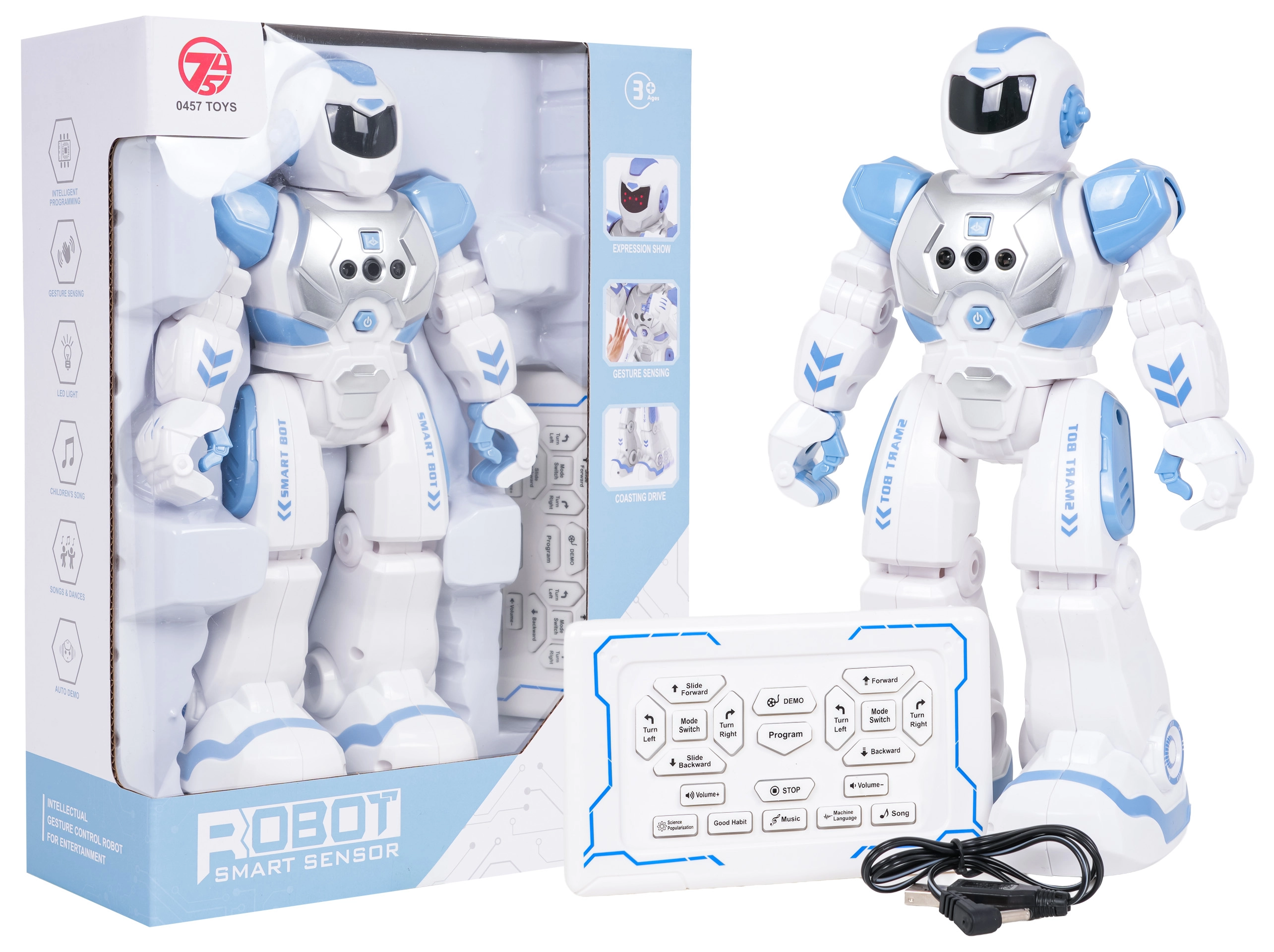 SMART-BOT est un compagnon fiable pour les enfants curieux. Grâce à sa construction stable en plastique de qualité, il maîtrise la marche, les glissades latérales, la rotation à 360° et il danse sur la musique. Les yeux rétroéclairés, les sons et les chansons stimulent l’imagination et le sens du rythme, tandis que ses réactions et de simples conseils sur les bonnes habitudes encouragent un comportement positif.