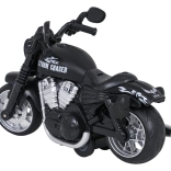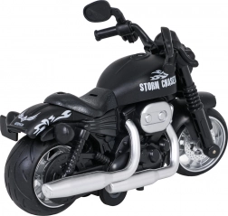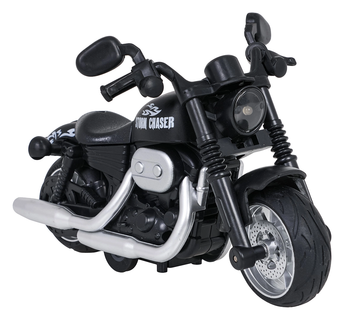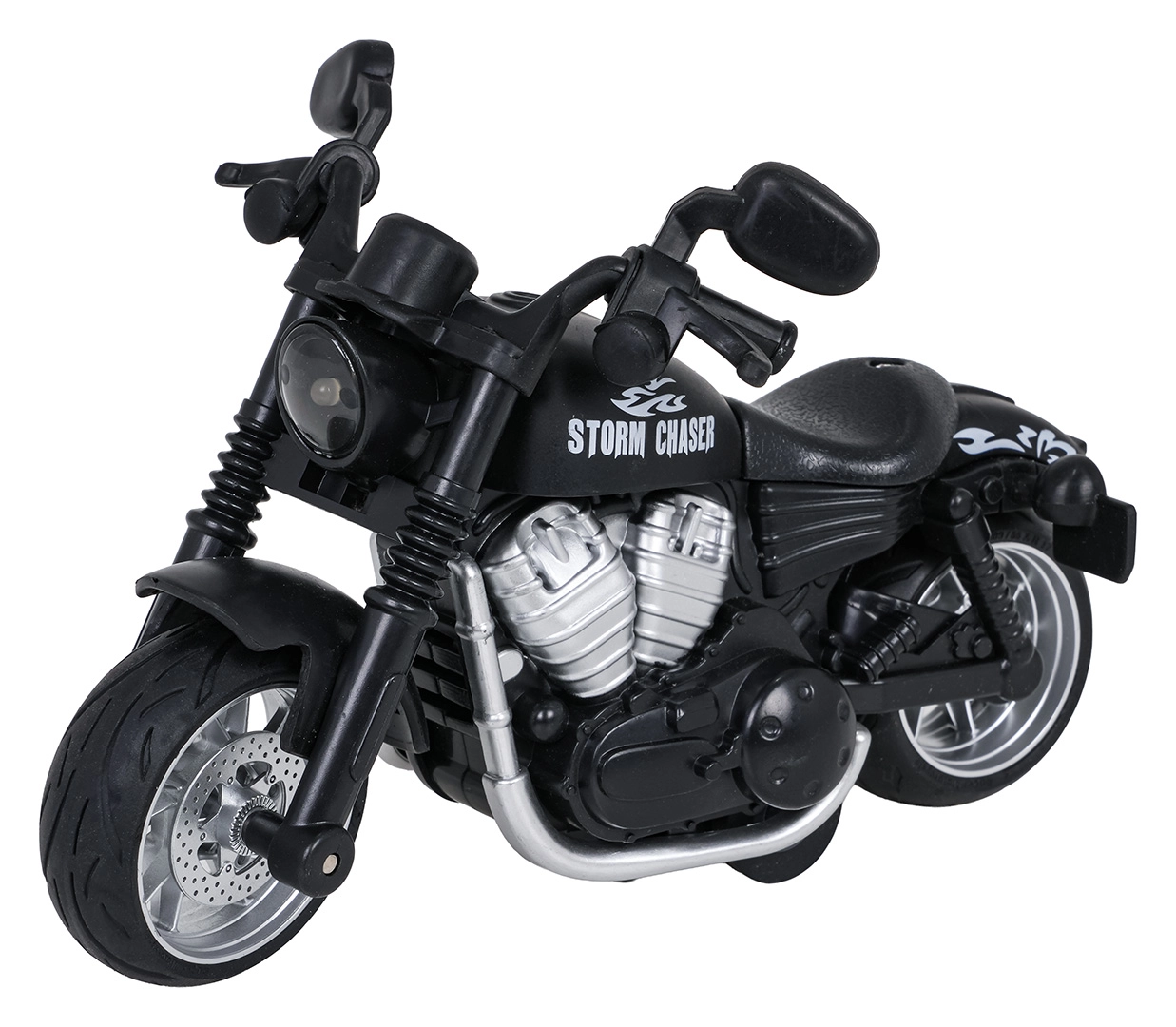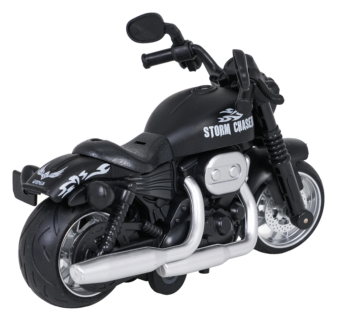 Profitez d’une conduite pleine d’action avec le modèle de moto STORM CHASER aux détails soignés. Sa construction robuste en métal, les détails fidèles du moteur et de l’échappement ainsi que les pneus en caoutchouc garantissent un super look et une bonne résistance au jeu. Grâce au mécanisme à rétrofriction, il suffit de tirer et de relâcher – la moto fonce en avant.
