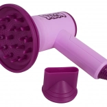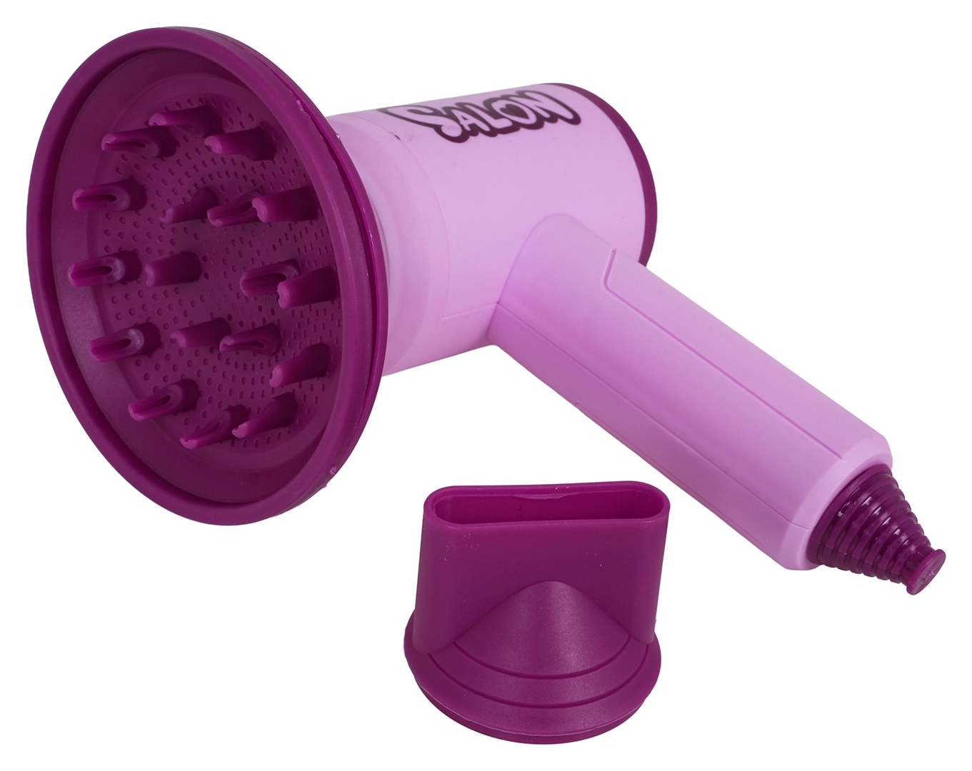 Le sèche-cheveux pour enfants offre un bruit de séchage et un flux d’air doux pour un jeu réaliste. L’emballage comprend un diffuseur et un concentrateur pour différents effets de « styling ».