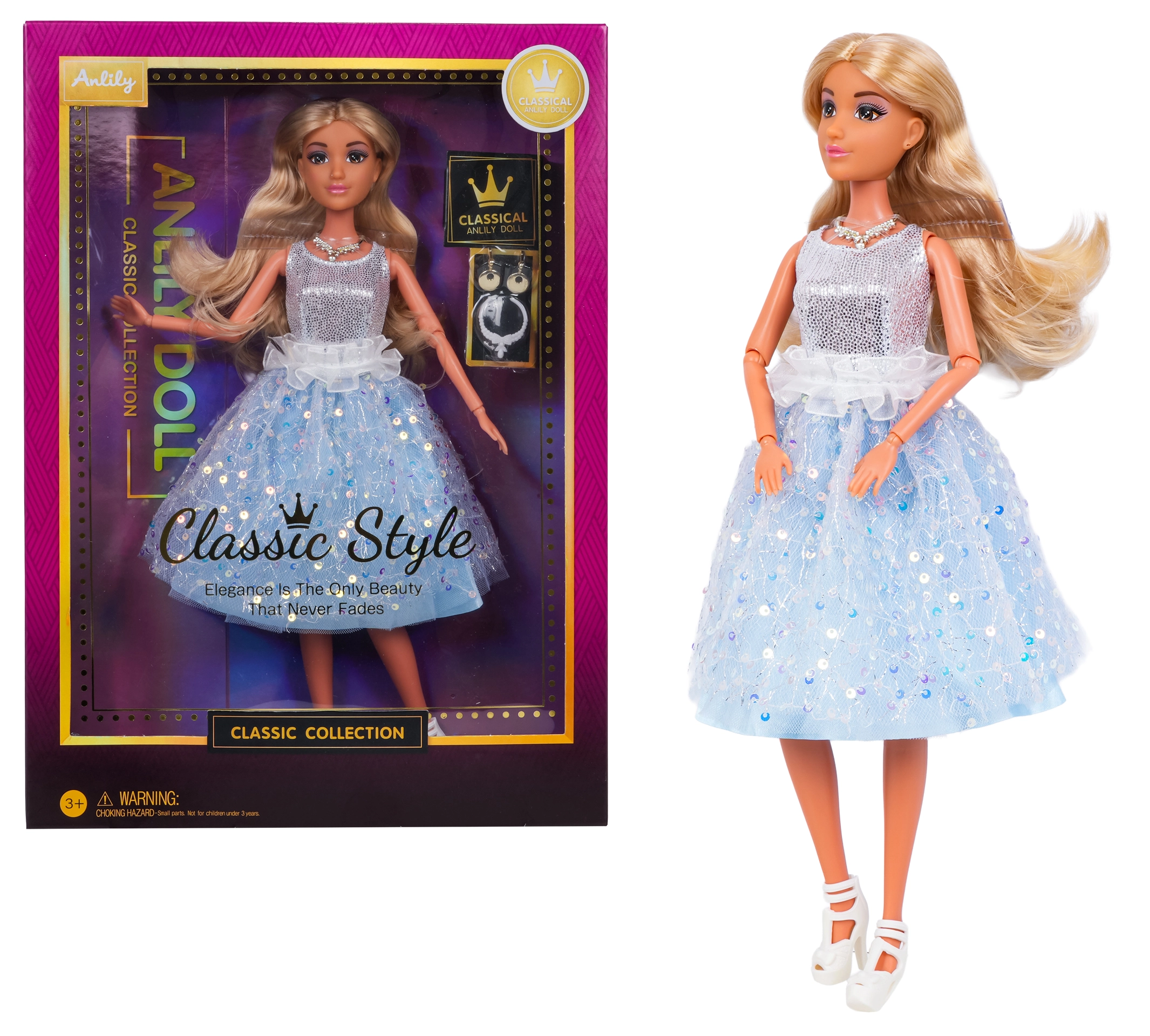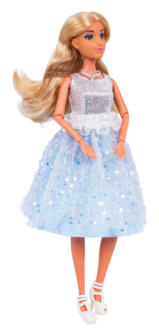Poupée stylée pour enfants dès 3 ans, fabriquée avec des matériaux de qualité et le sens du détail. Elle a des cheveux réalistes, longs et doux, parfaits pour le coiffage et les tresses, une robe de soirée scintillante et des escarpins blancs à talons. Des membres articulés avec coudes et genoux permettent des poses naturelles et rendent encore plus amusants les défilés de mode ou les bals imaginaires.