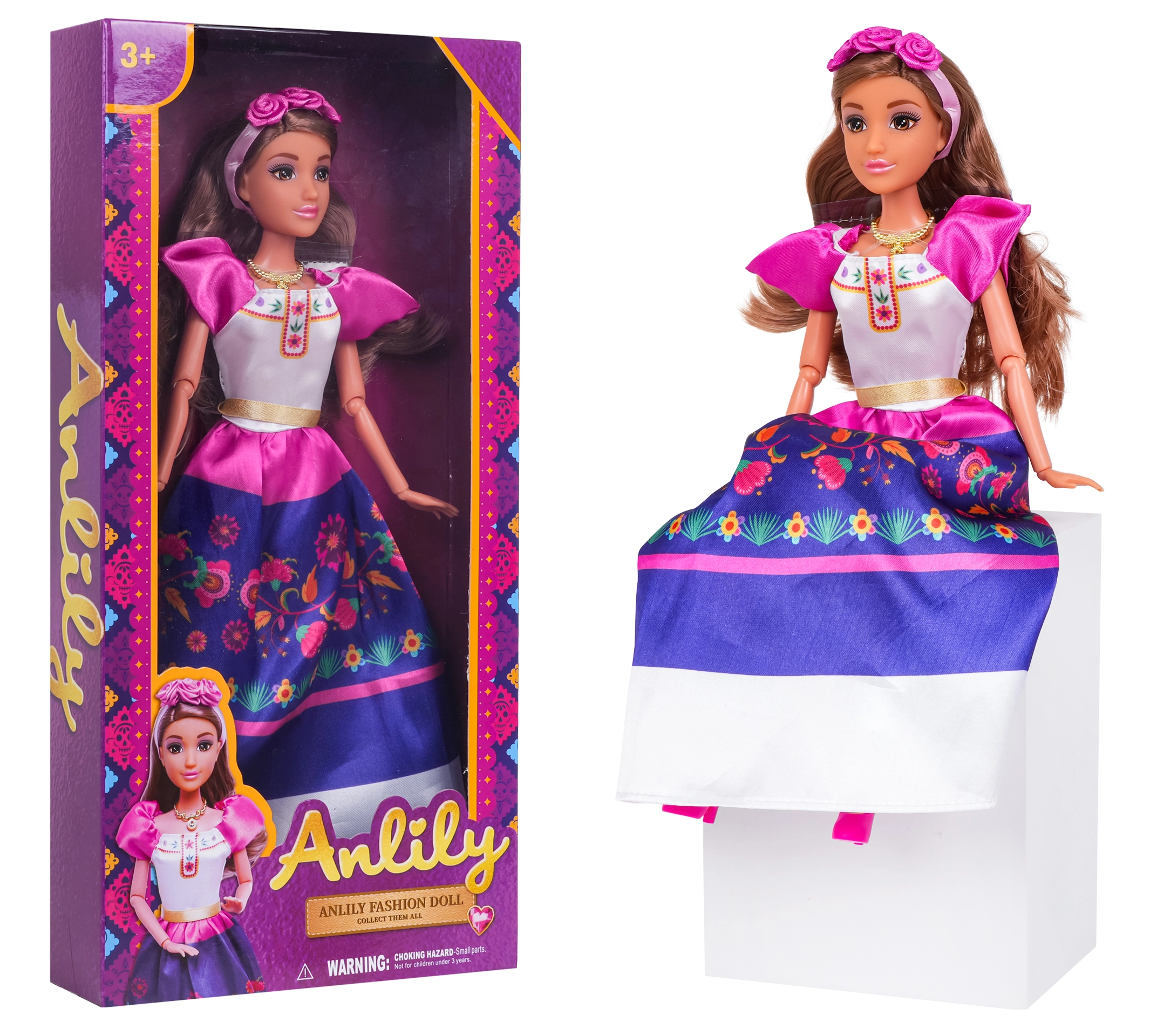 Le modèle est réalisé avec soin du détail et durabilité pour résister au jeu quotidien. Les longs cheveux bruns peuvent être peignés et coiffés de diverses manières, ce qui développe la motricité fine et la créativité des enfants.