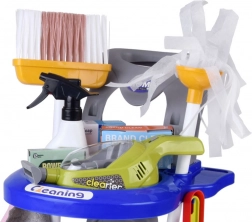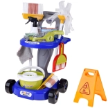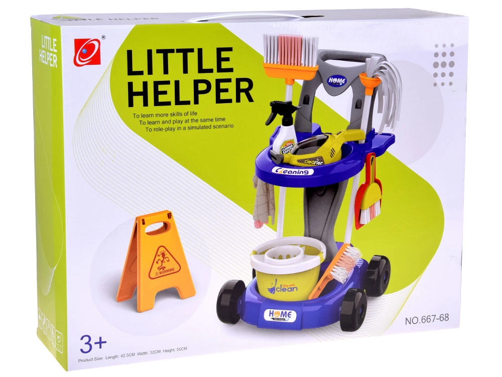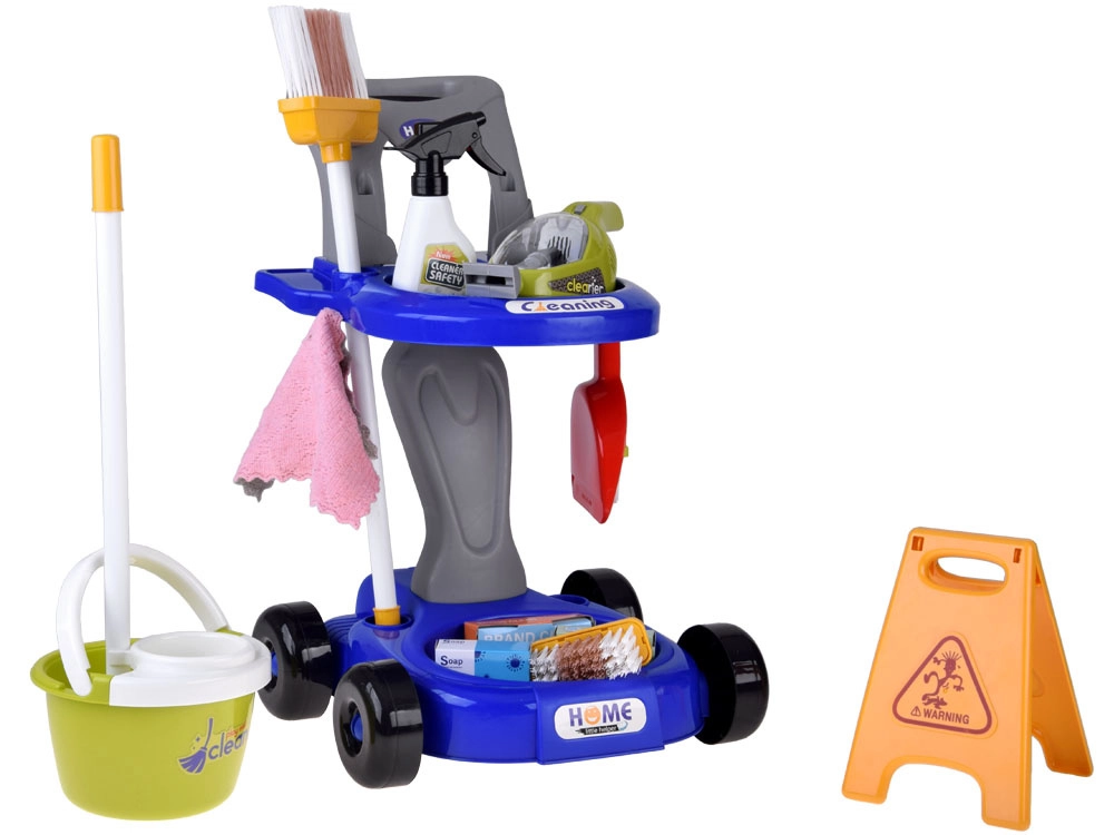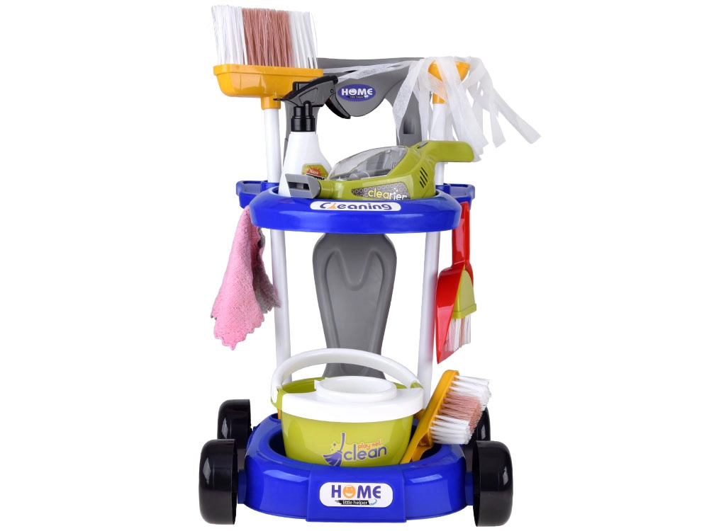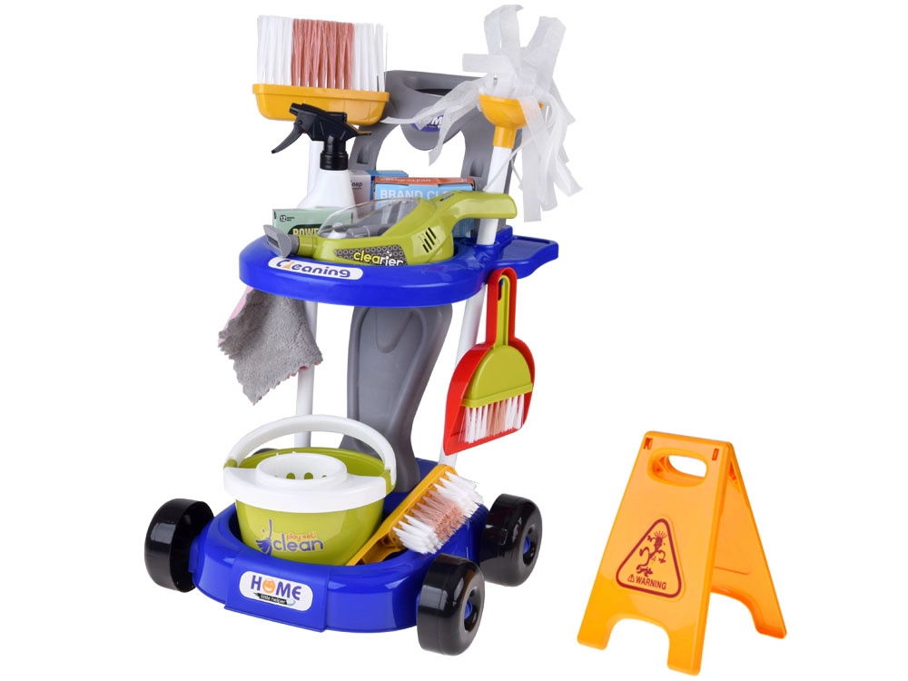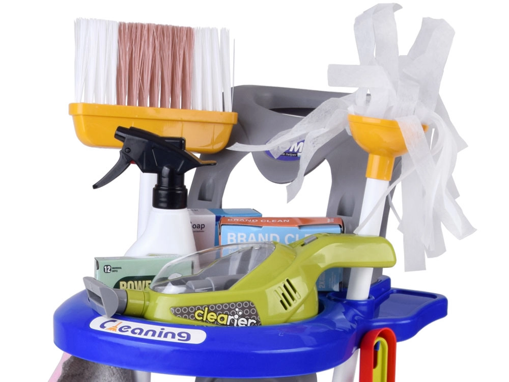 Offrez aux enfants un amusement réaliste avec ce chariot de ménage rempli d’accessoires. Le set comprend une serpillière, un balai, une balayette avec grattoir, un seau avec essoreuse, un chiffon, un pulvérisateur, un panneau d’avertissement, des boîtes en carton et un aspirateur jouet avec embouts interchangeables et billes à « aspirer ». Les enfants imitent ainsi en toute sécurité les activités quotidiennes des adultes et apprennent l’importance de maintenir l’ordre.