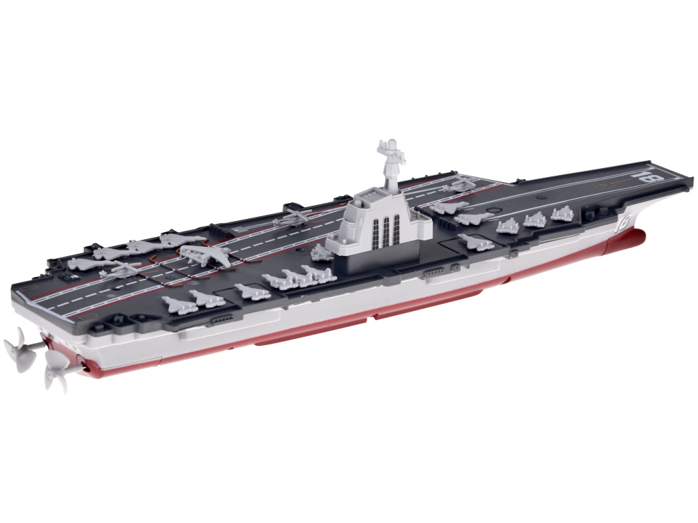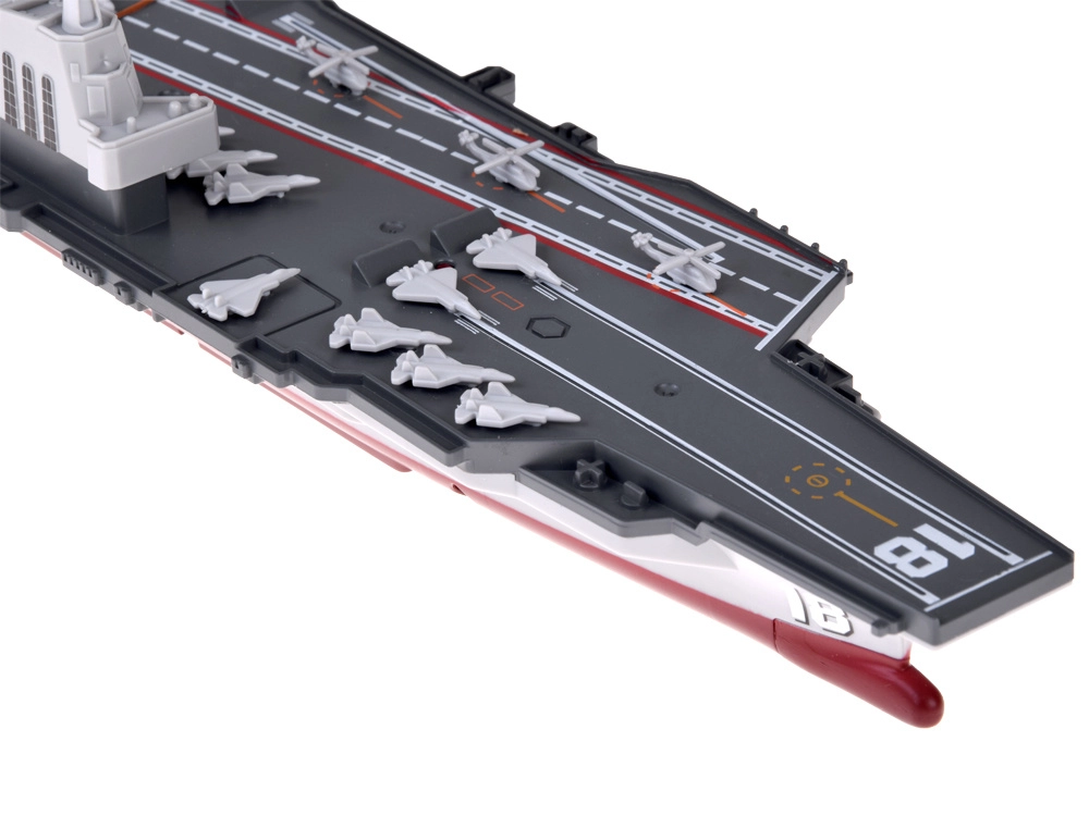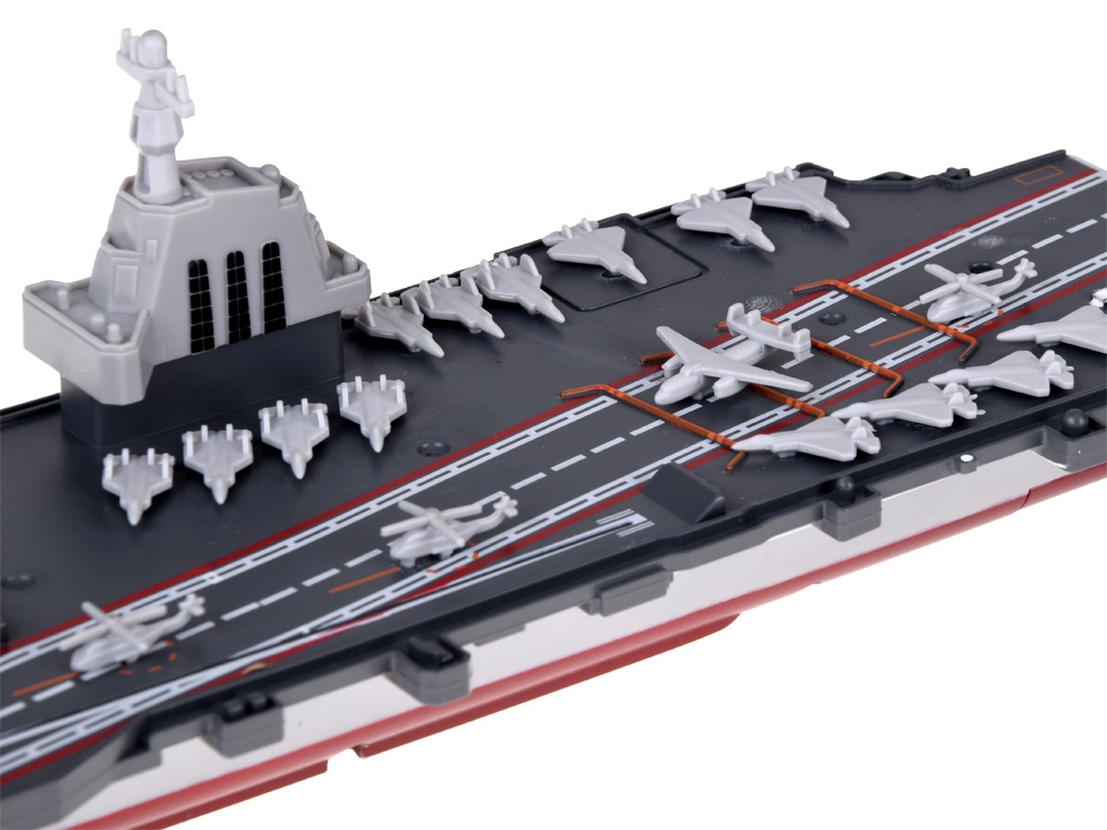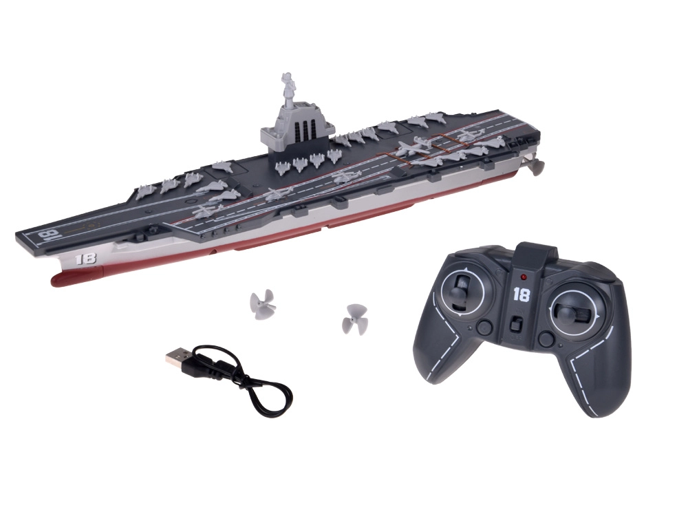 Ce porte-avions téléguidé reproduit fidèlement un pont réel avec marquages de piste, « îlot » de contrôle et flotte de mini avions. Grâce à la manette type gamepad claire, le pilotage est intuitif – avant/arrière, gauche/droite – et la recharge USB assure un usage pratique à la maison comme au bord de l’eau.