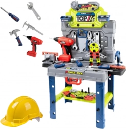 La table dispose de dimensions bien pensées et de solutions de rangement – étagères et ouvertures pour outils – afin que tout soit à portée de main. L’attraction principale est la visseuse électrique alimentée par 2× 1,5V AA (incluses) qui permet de percer et visser comme dans un atelier réel. La combinaison de couleurs et le grand nombre de composants invitent à créer ses propres projets et constructions.
