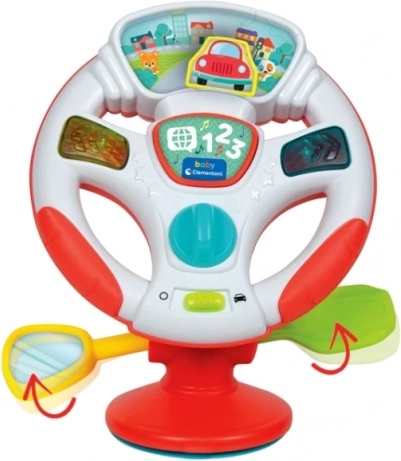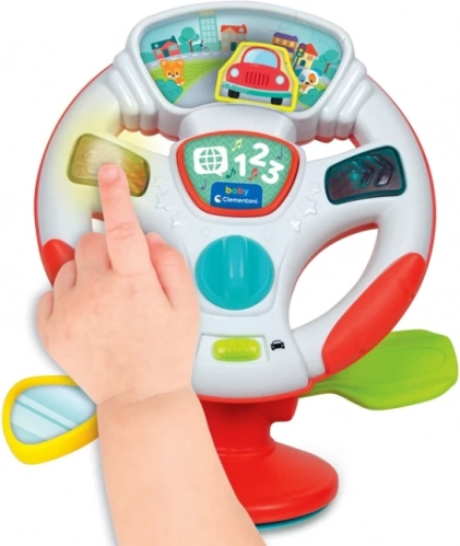 Découvrez la joie des premières « conduites » avec le volant interactif CLEMENTONI. En tournant le volant, la petite voiture se déplace à droite ou à gauche sur une route colorée et active des contenus liés à la conduite réelle. Les effets lumineux LED, les sons réalistes et les mélodies joyeuses stimulent la perception et la concentration.