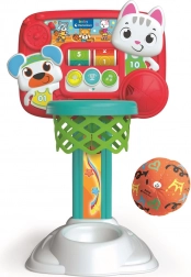 Amusant panier de basket interactif pour les tout-petits dès 18 mois. Le panneau compte les paniers, enseigne les chiffres et les premiers mots en polonais et soutient la motricité fine et globale, la coordination des mouvements et le jeu actif. Grâce au pied réglable et au panneau amovible, il grandit avec l’enfant. Comprend un panier textile souple et un design joyeux avec un chaton et un ourson.