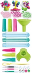 La boîte contient un équipement complet incluant des encres colorées, des tubes transparents, des décorations, des perles et des figurines en caoutchouc. Les enfants peuvent ainsi concevoir leur propre style, combiner couleurs et accessoires et développer leur créativité et dextérité.
