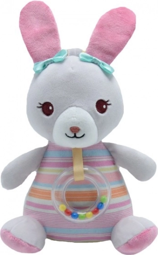 Adorable lapin musical rose de 20 cm, doux et moelleux, conçu pour apaiser bébé et l’aider à s’endormir plus facilement. Grâce à sa matière agréable et à ses couleurs tendres, il deviendra vite un premier compagnon préféré pour le jour comme pour la nuit – parfait aussi comme cadeau pour nouveau-né.