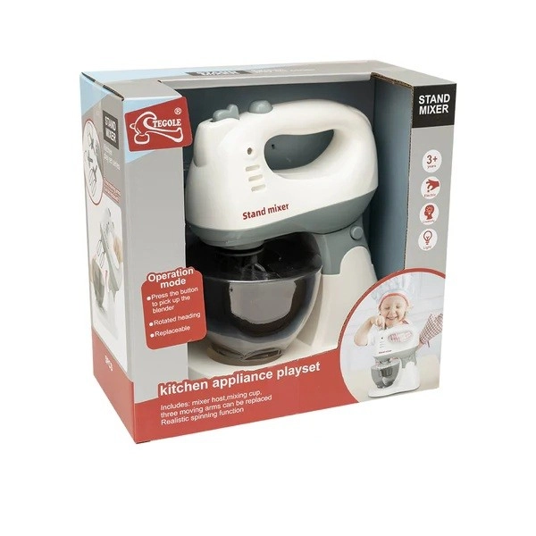Le mixeur pour enfants est un excellent accessoire pour des jeux de cuisine amusants. Grâce à deux modes de commande, à l’indication lumineuse et au mouvement réaliste des fouets, les enfants peuvent s’essayer au mélange et au fouettage comme dans une vraie cuisine. Les embouts interchangeables et le bol inclus stimulent l’imagination et favorisent la pensée logique.