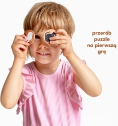 Jouez de deux façons : comme puzzle pour entraîner la motricité fine et comme jeu pour développer la mémoire et l’attention. Retournez les jetons face cachée, piochez et associez-les à votre puzzle. Gagne celui qui complète correctement tous ses anneaux en premier. Pour les plus jeunes, on peut jouer contre la montre et chercher des images précises.