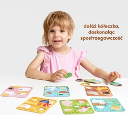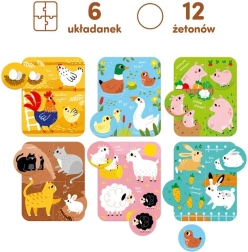 Découvrez un coffret ludique pour les tout-petits : 6 puzzles de 4 pièces avec de joyeux animaux de la ferme et 12 jetons ronds à associer. Idéal comme premiers puzzles plus exigeants et comme jeu familial simple. Les enfants entraînent leur motricité fine, leur sens de l’observation, leur mémoire et leur concentration en assemblant des chatons, des porcelets ou des poules.