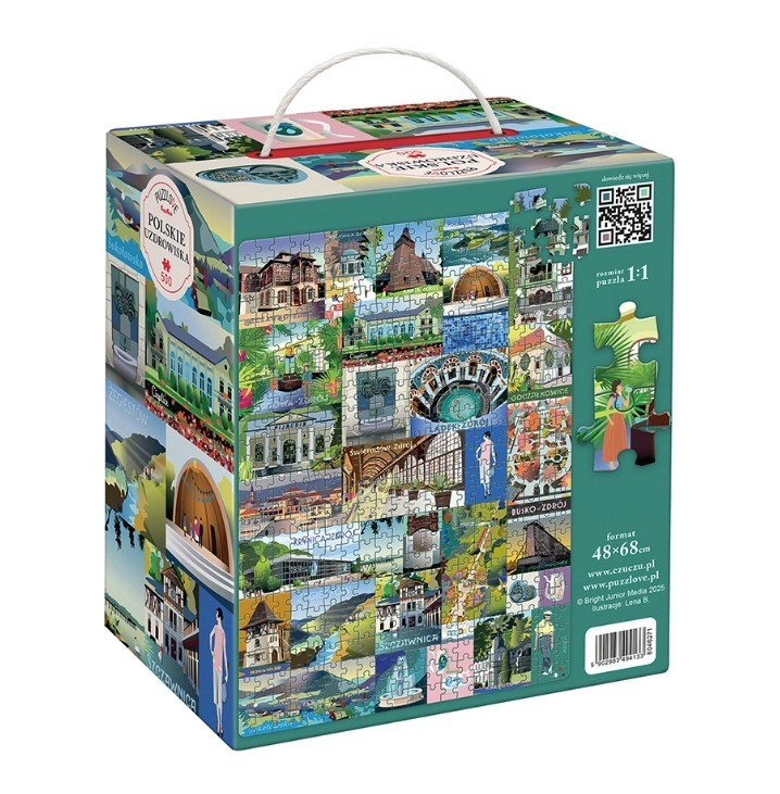 Découvrez le charme des villes thermales polonaises avec le magnifique puzzle illustré Puzzlove. Cet ensemble de 500 pièces offre un divertissement relaxant, une haute qualité de fabrication et un motif plein de paysages pittoresques des plus belles destinations thermales au bord de la mer, en montagne et au bord des lacs. Idéal comme cadeau et, une fois assemblé au format 48 × 68 cm, comme décoration élégante pour votre intérieur.