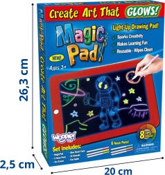 La tablette de dessin magique WOOPIE transforme les dessins des enfants en créations lumineuses néon. Grâce au rétroéclairage LED avec 8 effets, à la surface effaçable et aux feutres néon, dessiner, apprendre les lettres et compter devient propre, amusant et ultra créatif.