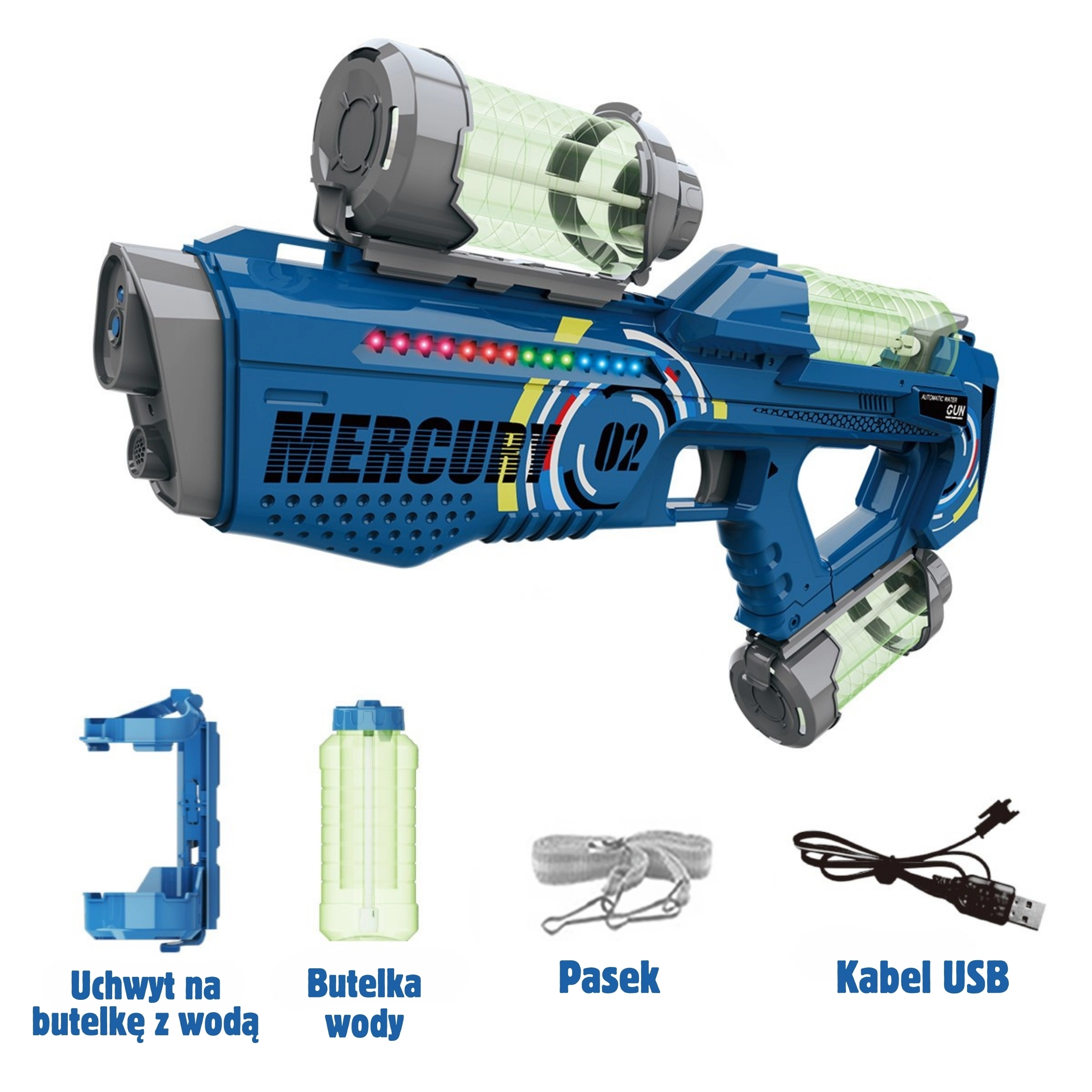 Le pistolet à eau électrique WOOPIE MERCURY 02 est conçu pour un confort et un plaisir maximum. Grâce au fonctionnement automatique, aucun pompage n’est nécessaire – il suffit d’appuyer sur la gâchette pour profiter d’un flux d’eau ininterrompu. La batterie 2200 mAh offre une longue autonomie sur une seule charge et l’indicateur LED vous informe de l’état de charge.