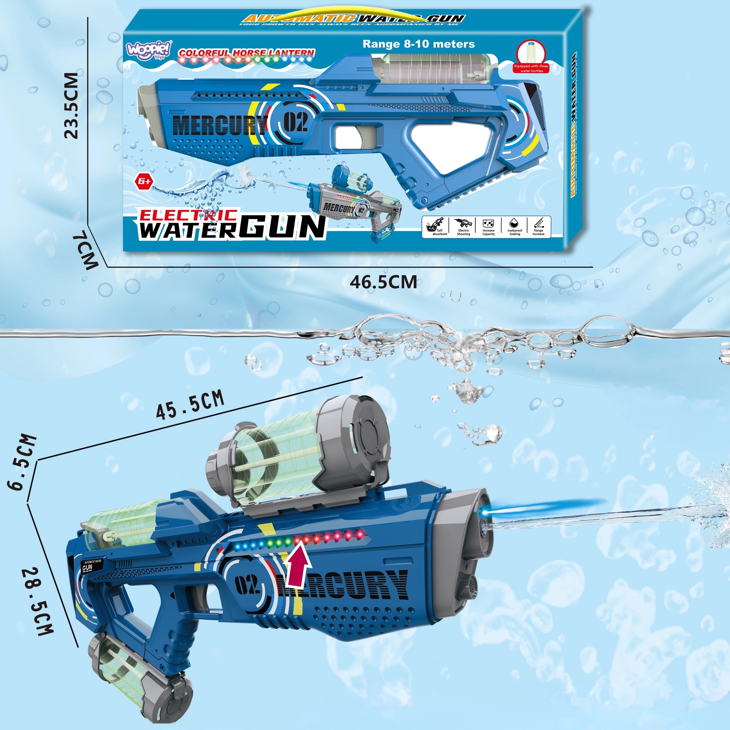 Profitez pleinement de l’été avec le pistolet à eau électrique WOOPIE MERCURY 02 ! Il offre un jet automatique sans pompage, une batterie puissante de 2200 mAh, 3 réservoirs d’eau interchangeables et une charge USB. Un excellent choix pour les enfants dès 6 ans comme pour les adultes – au jardin, au bord de l’eau ou pour des batailles aquatiques.