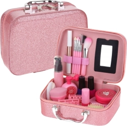 Le coffret cosmétique et coiffure pour enfants WOOPIE offre 43 pièces pour jouer au salon de beauté. Tout est léger, sûr et robuste, rangé dans une adorable valisette rose pailletée facile à transporter. Un excellent cadeau qui stimule l’imagination, la motricité fine et le jeu de rôle sans désordre.