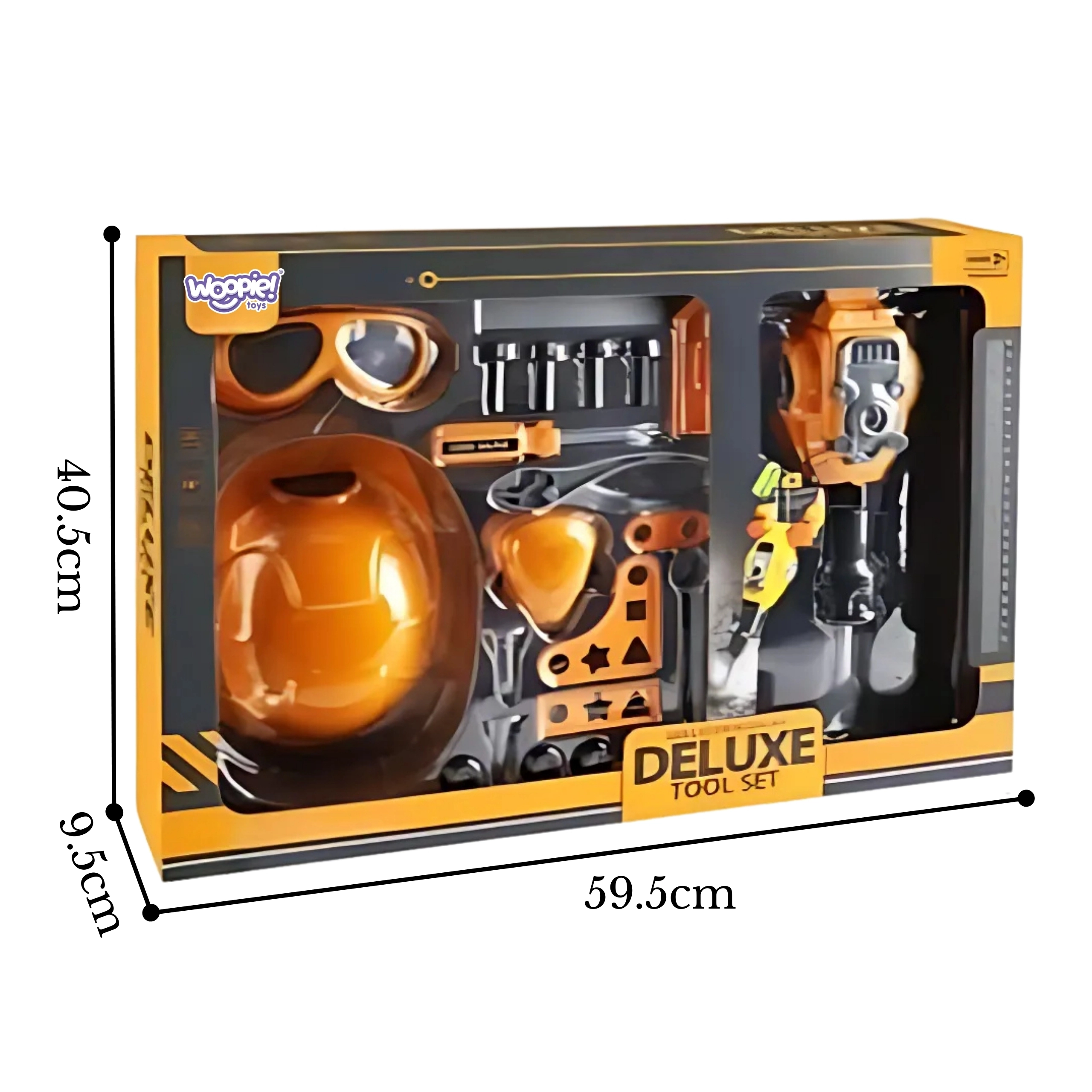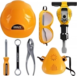 Ce riche ensemble d’outils pour enfants est pensé pour de jeunes constructeurs dès 3 ans. L’accent mis sur la sécurité et l’authenticité est assuré par le casque, les lunettes de protection et le masque, tandis que le marteau-piqueur pneumatique à piles apporte des effets réalistes amusants inspirés d’outils réels. Les pièces lisses en ABS sont durables, légères et tiennent bien dans les petites mains.