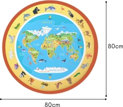 Grand tapis rond à l’eau de 80 cm de diamètre avec carte du monde et animaux qui transforme le sol en atelier créatif. Les enfants dessinent uniquement avec de l’eau – sans peinture, sans taches et sans souci – et les dessins disparaissent d’eux‑mêmes après séchage. Il stimule la motricité fine, la créativité et la découverte précoce du monde.