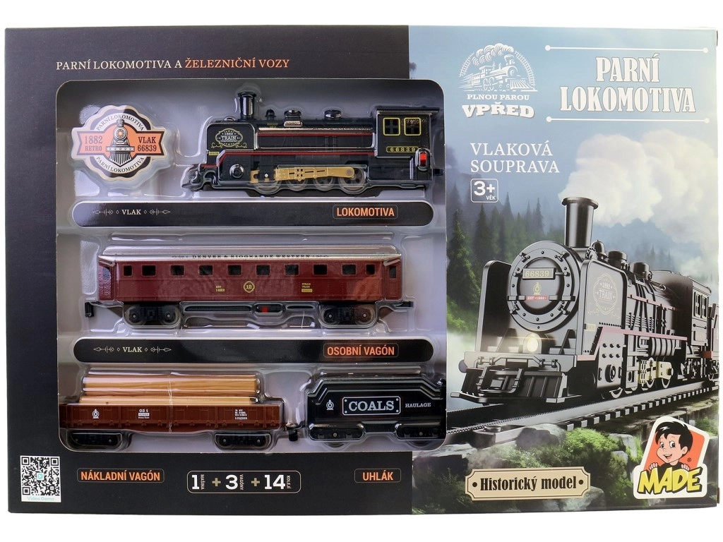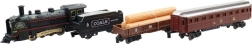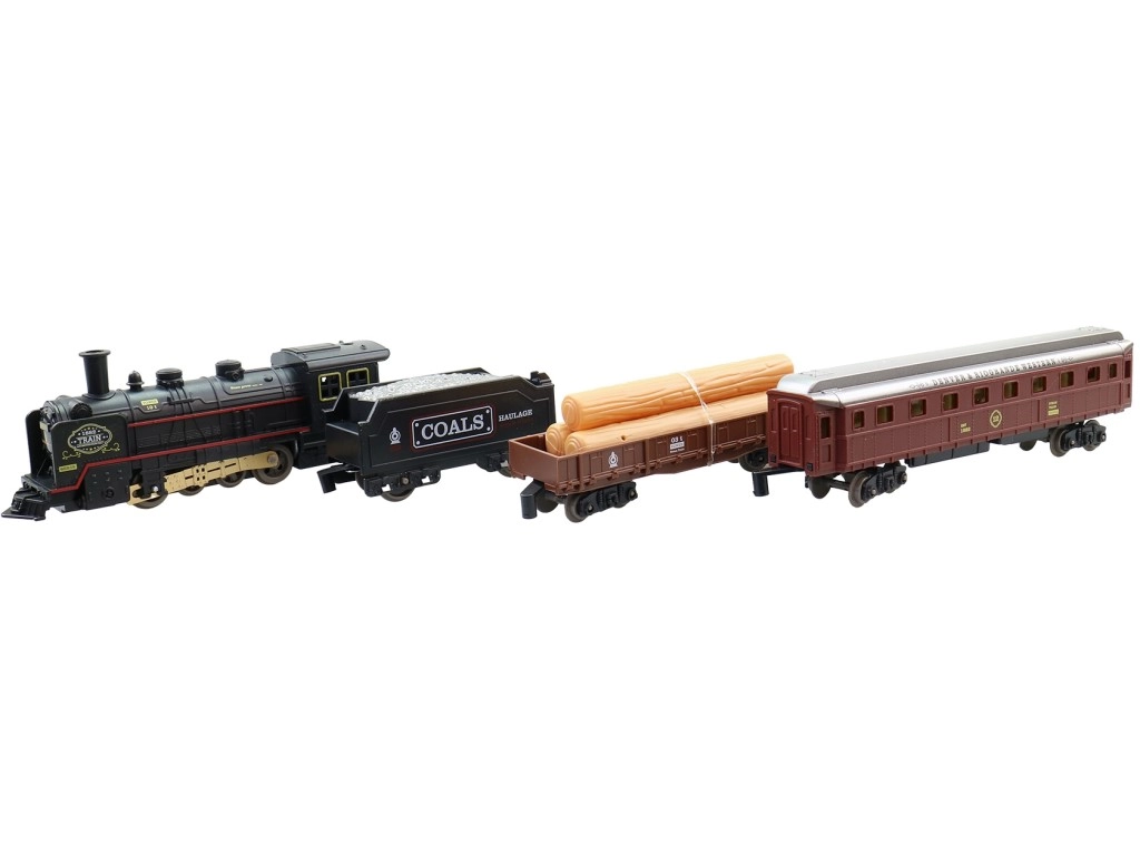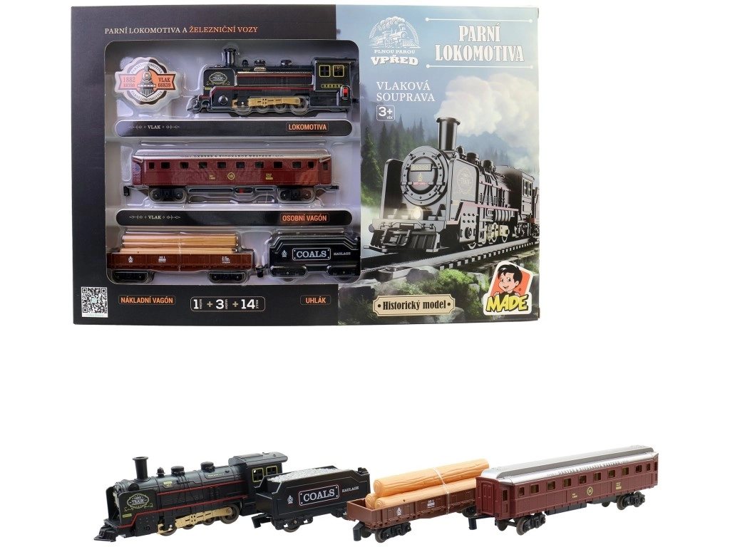 Le tender à charbon, ainsi que le wagon voyageurs et le wagon de fret, sont inclus. Les enfants peuvent transporter des passagers et des marchandises et inventer leurs propres histoires.