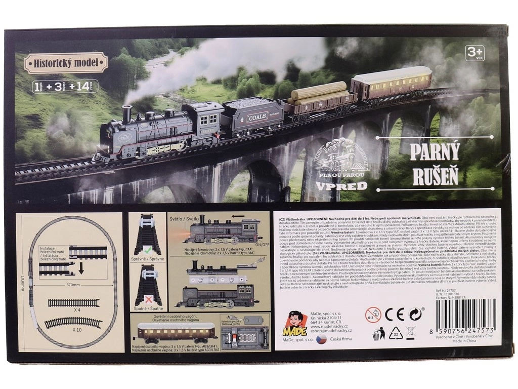 La conception en plastique sûre, les attelages faciles à connecter et l’alimentation par piles garantissent une utilisation confortable, sans câbles. Les trains présentent une finition détaillée et un mouvement fluide sur les rails, stimulant l’imagination, la motricité fine et la pensée logique.