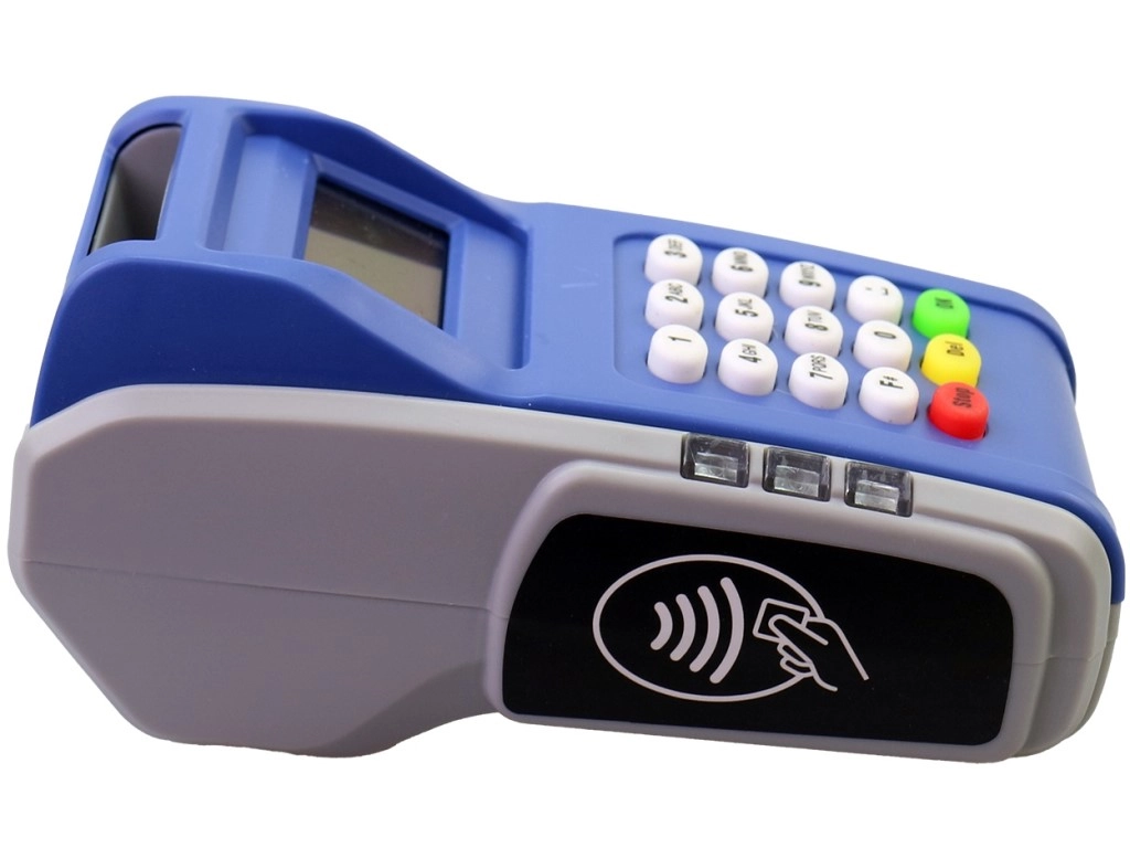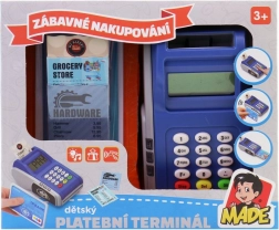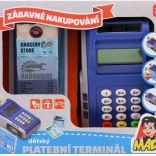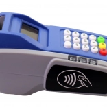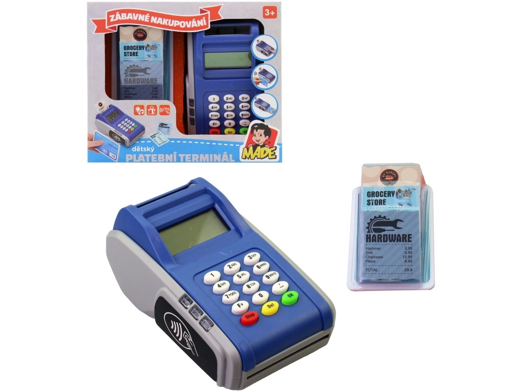 Un petit écran, un clavier numérique et des boutons fonctionnels colorés apprennent aux enfants à saisir des montants et à confirmer des paiements de manière ludique.