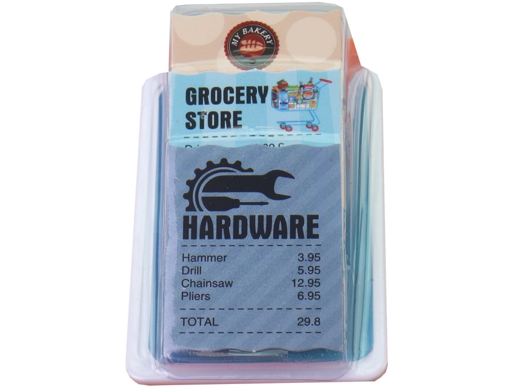 Le plastique léger est agréable en main et résiste à un usage quotidien. L’appareil est destiné aux enfants dès 3 ans et est alimenté par trois piles AAA (non incluses) : il suffit d’insérer les piles et de commencer à jouer au paiement comme avec une vraie caisse.