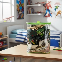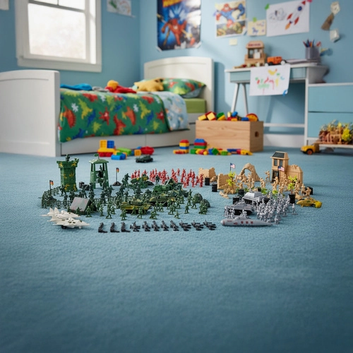 Grand ensemble avec jusqu’à 300 pièces pour des scénarios militaires créatifs : soldats de différentes couleurs, chars, avions, canons, bâtiments et accessoires. Figurines en plastique durables à l’échelle env. 1:40, le tout rangé dans un étui pratique à fermeture éclair avec poignée pour un transport facile. Un cadeau idéal pour développer l’imagination, la créativité et la pensée stratégique.