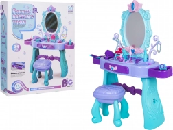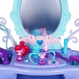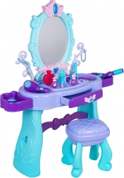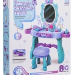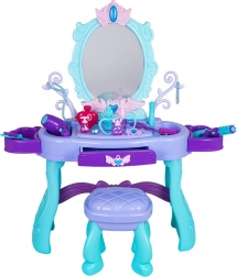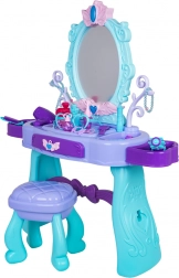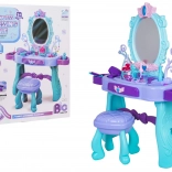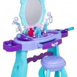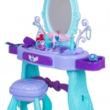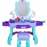 Offrez aux enfants leur propre coin beauté magique. Cette coiffeuse aux couleurs turquoise et violet propose un grand miroir ovale avec éclairage, un tiroir pratique et des plateaux latéraux pour tous les accessoires. Le tabouret stable assure une assise confortable et un jeu en toute sécurité.